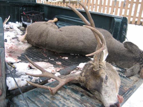 Brian writes, "I came back home from school for the last 3 days of the hunting season in hopes of finding another buck. I saw a nice buck the first day after tracking him and a doe in the snow, but I was unable to get a shot.